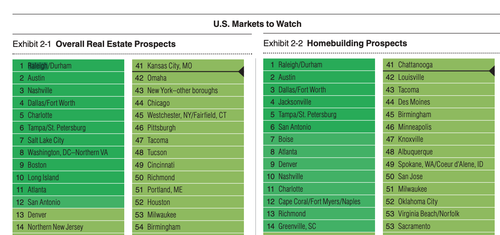 Raleigh-Durham is both the #1 prospect for real estate, in addition to the #1 market for homebuilding prospects. If you've been around the Triangle (Raleigh, Durham, Chapel Hill) lately, it's easy to see why.