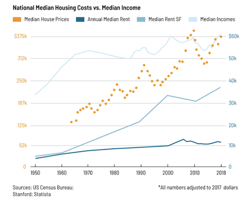US Census Bureau data reveals that national wages are stagnating, while housing costs are continuing to rise. This, in turn, has created an affordability crisis unmatched in history. And while interest rates live below historic lows, frankly, people can't afford to be homeowners.